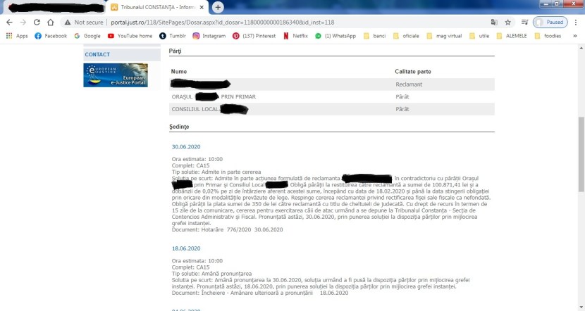 Avocat ALEX GALAN din Constanța a câștigat în 2020 un important proces la Tribunalul Constanța pentru un client societate comercială privată (cea mai mare producătoare de cabluri metalice din România): A obținut obligarea primăriei (consiliul local) unui mare oraș din județul Constanța la plata către societate a sumei de 100.871 lei plus penalități de întârziere.